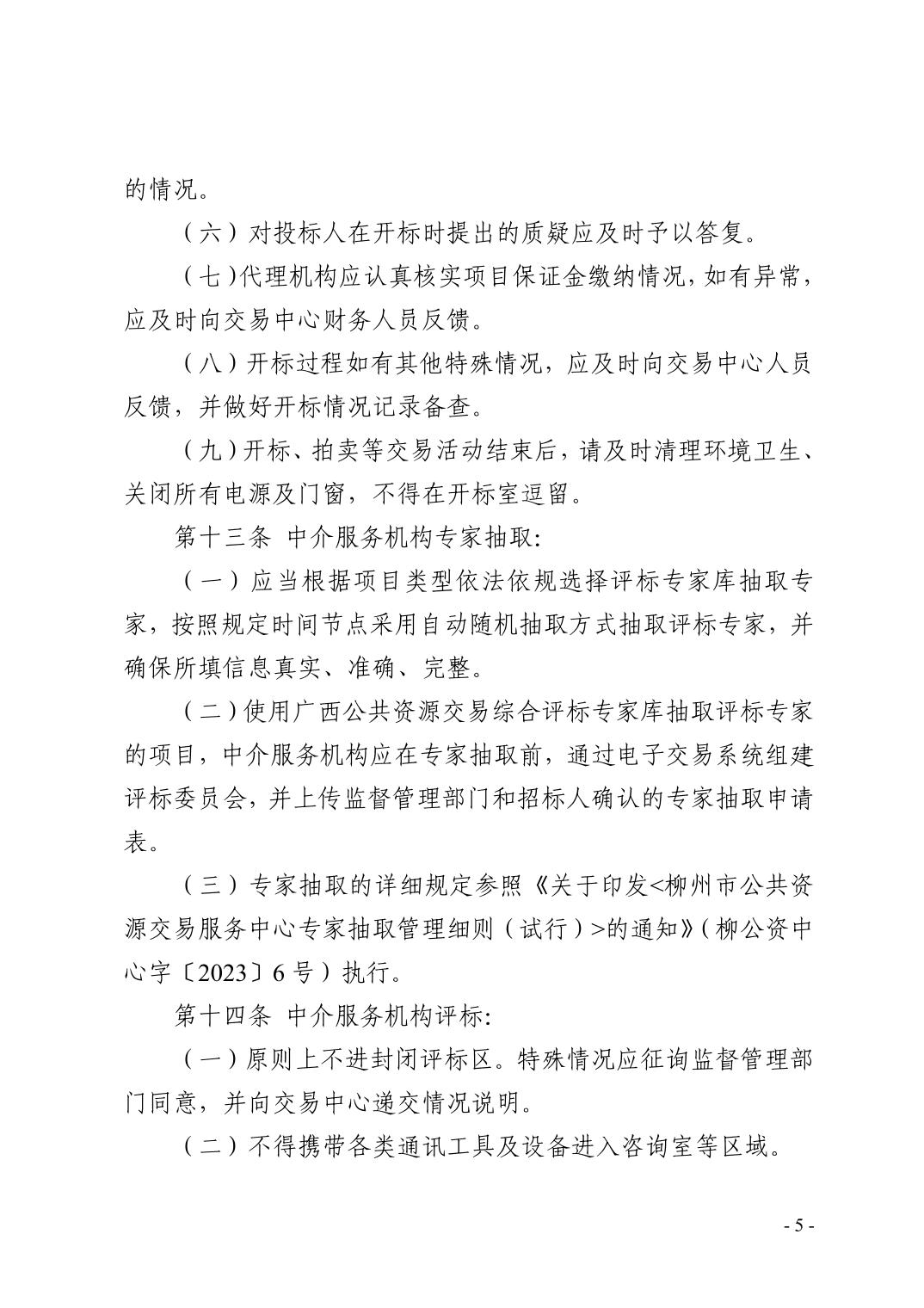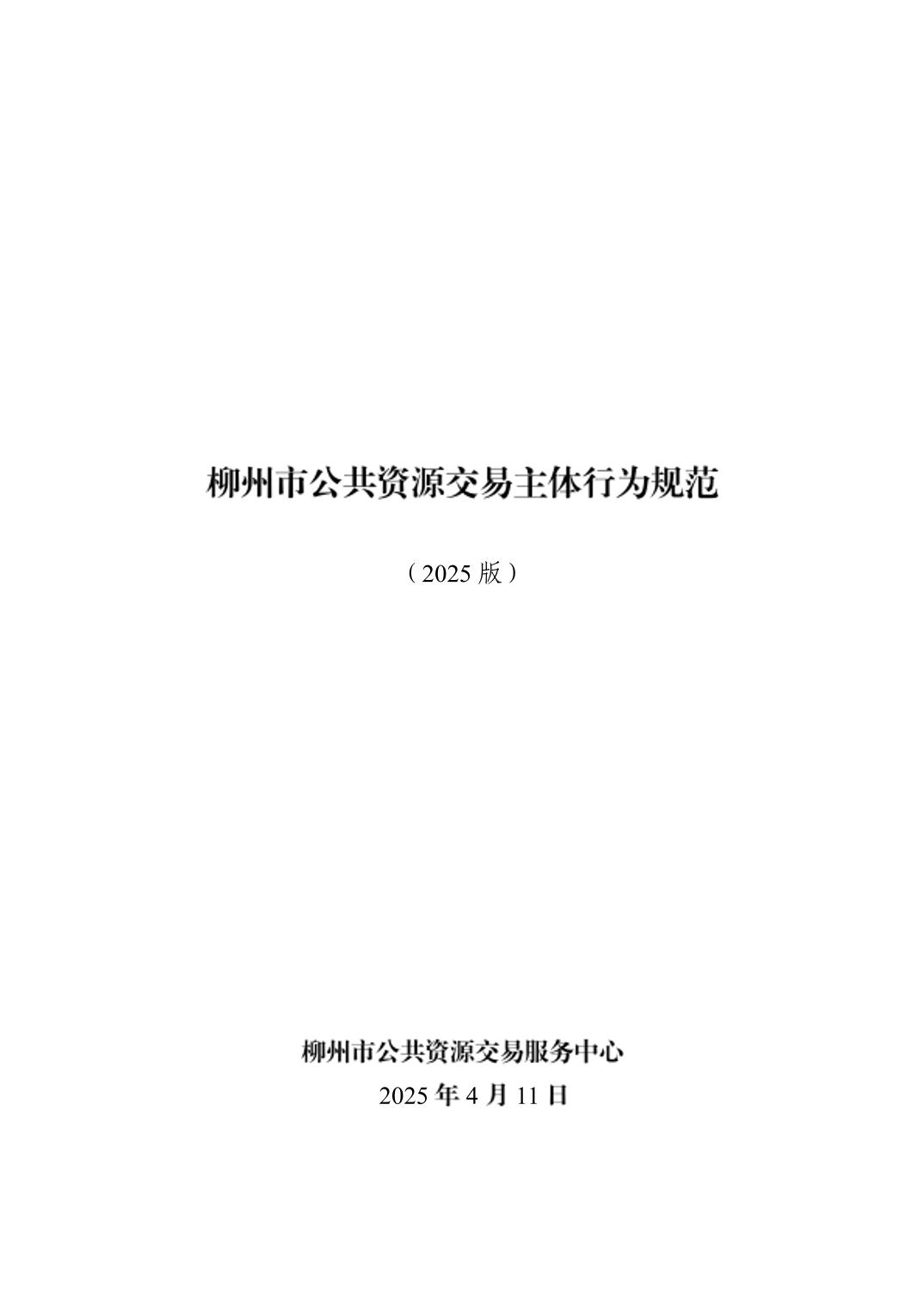 关于印发《柳州市公共资源交易主体行为规范(2025版)》的通知