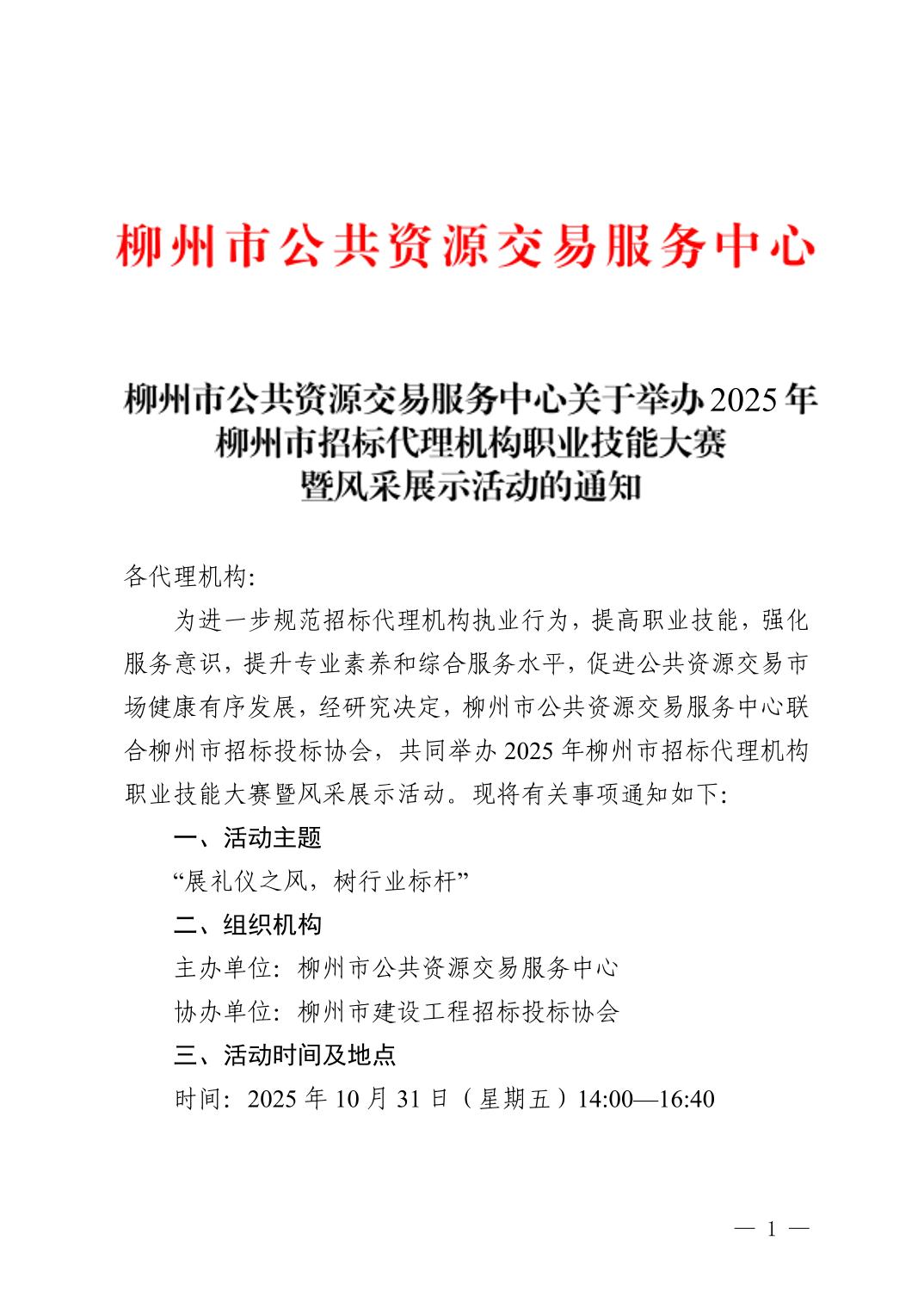 柳州市公共资源交易服务中心关于举办2025年柳州市招标代理机构职业技能大赛暨职业风采展示活动的通知