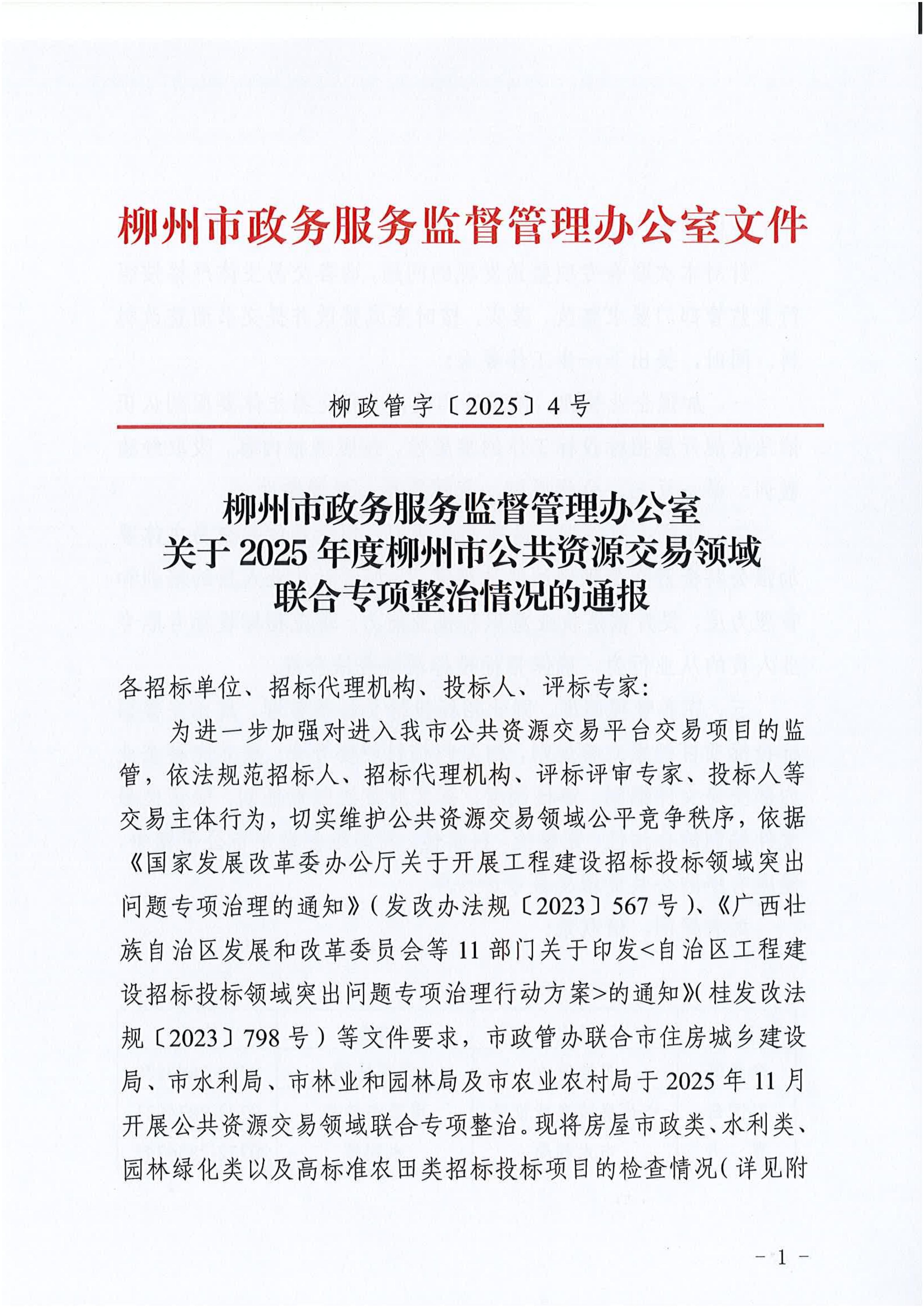 柳政管字〔2025〕4号 关于2025年度柳州市公共资源交易领域联合专项整治情况的通报