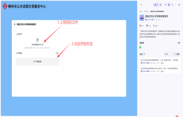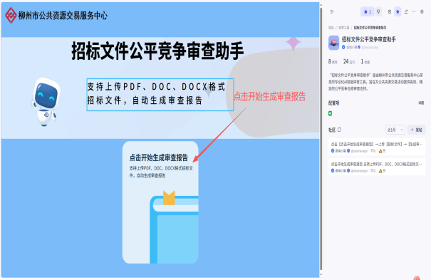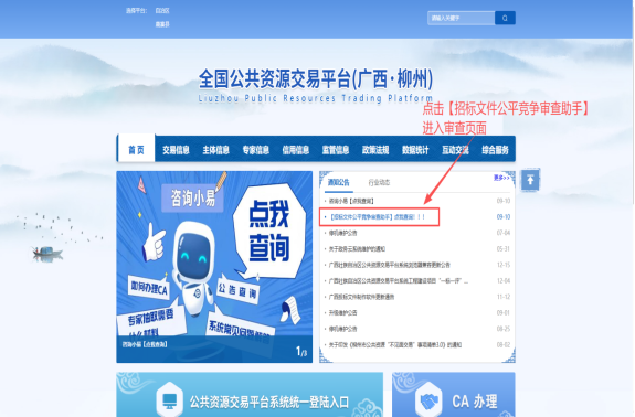 在平台首页,点击页面中的“招标文件公平竞争审查助手”,进入审查页面。