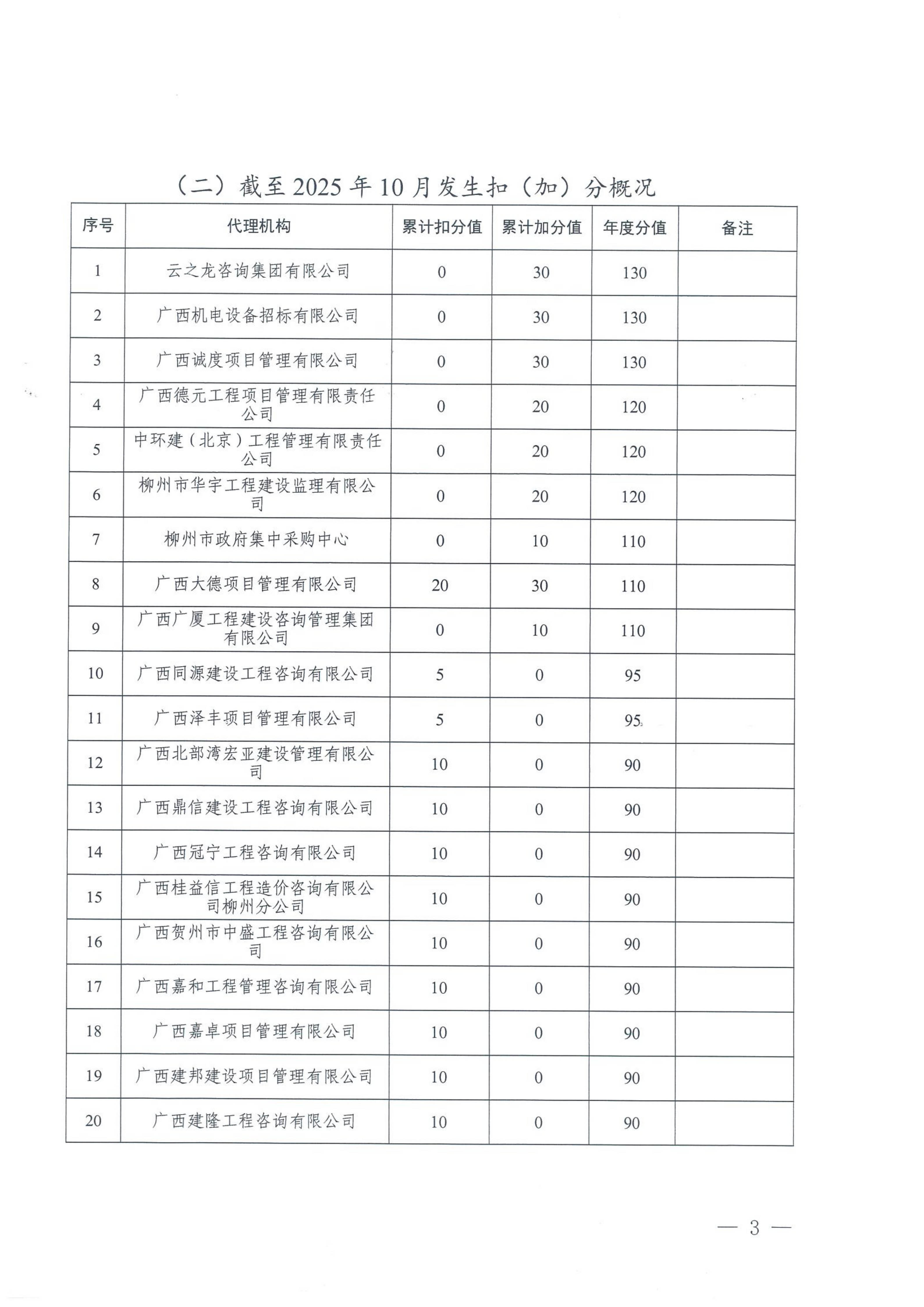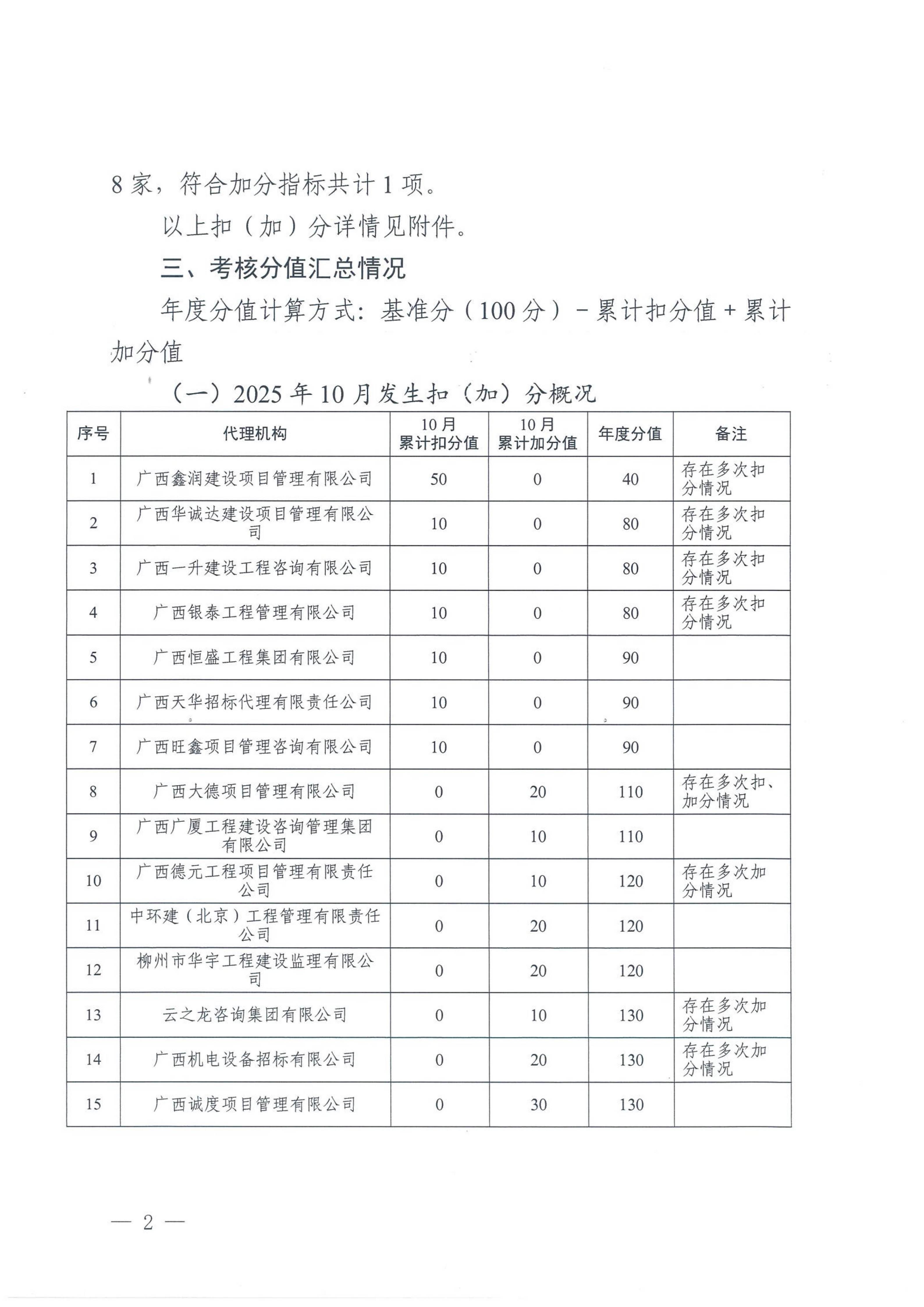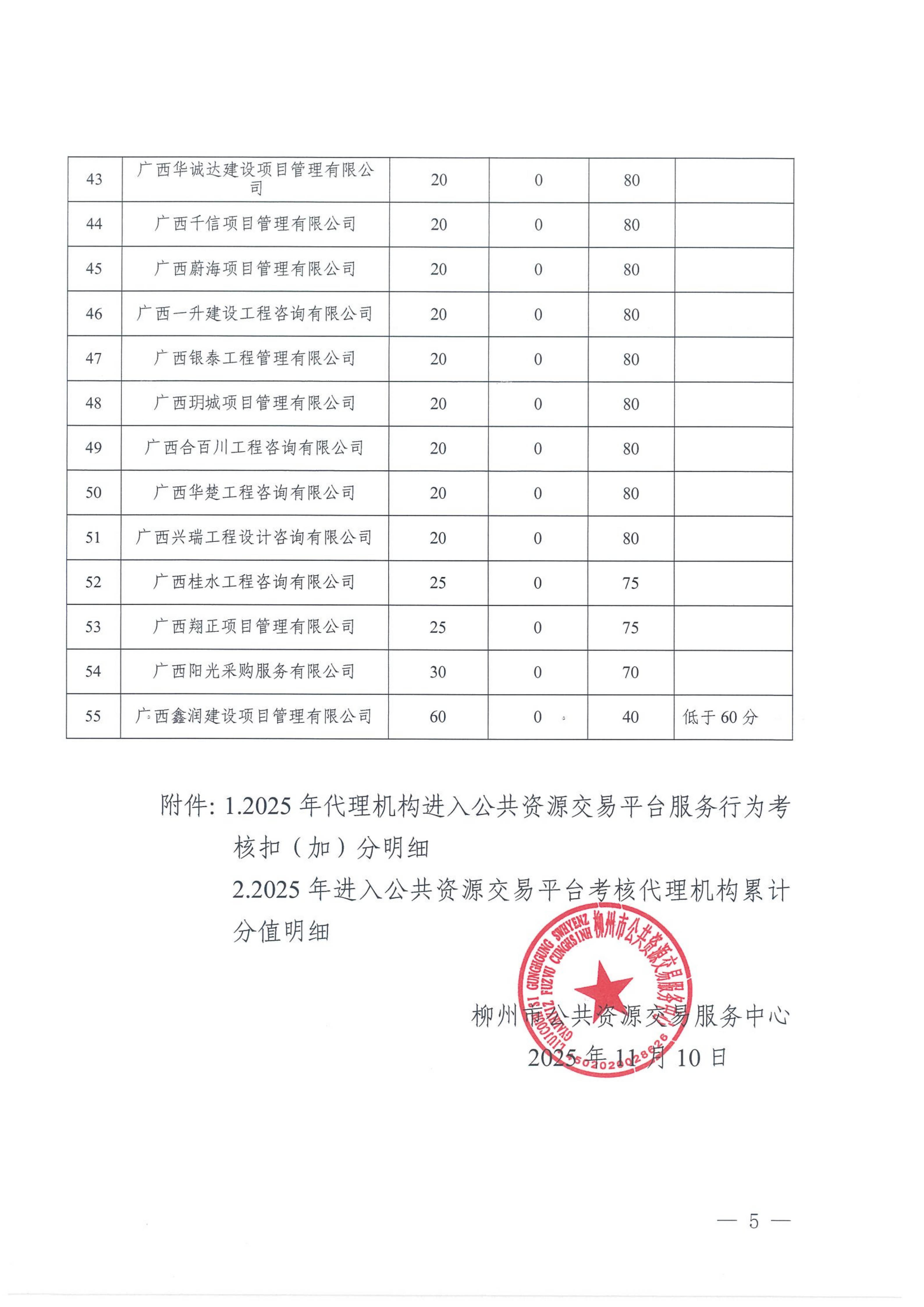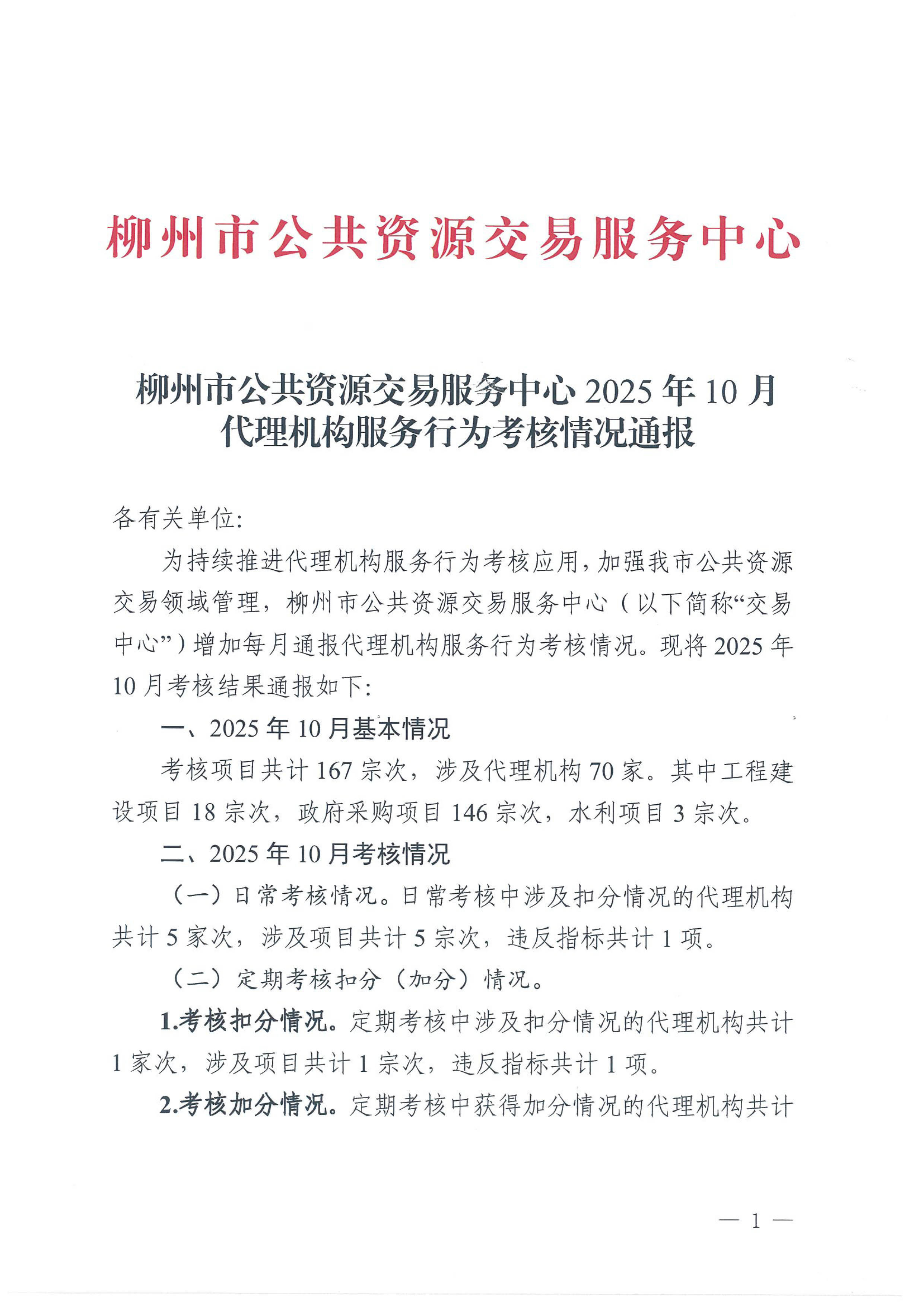 柳州市公共资源交易服务中心2025年10月代理机构服务行为考核情况通报