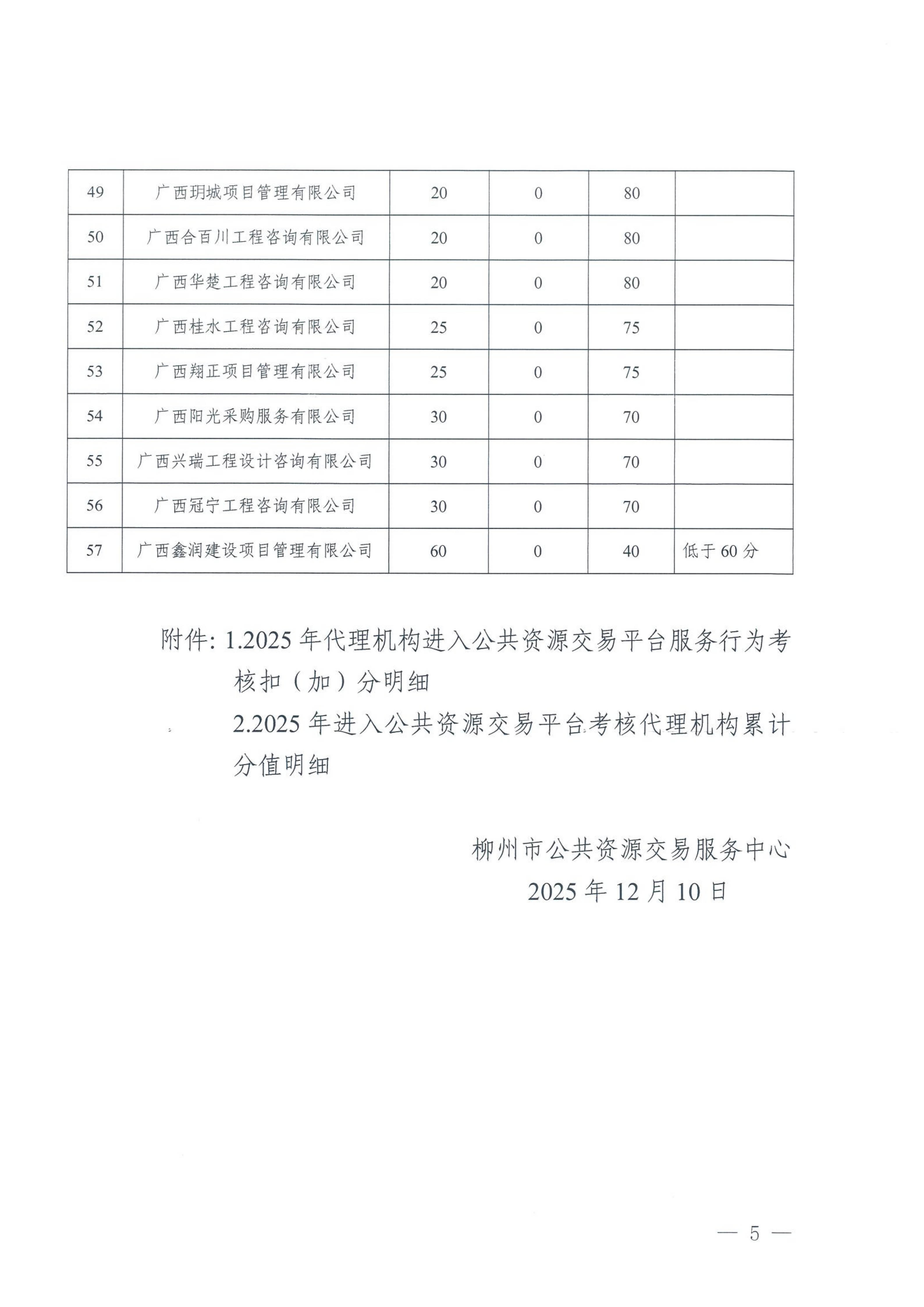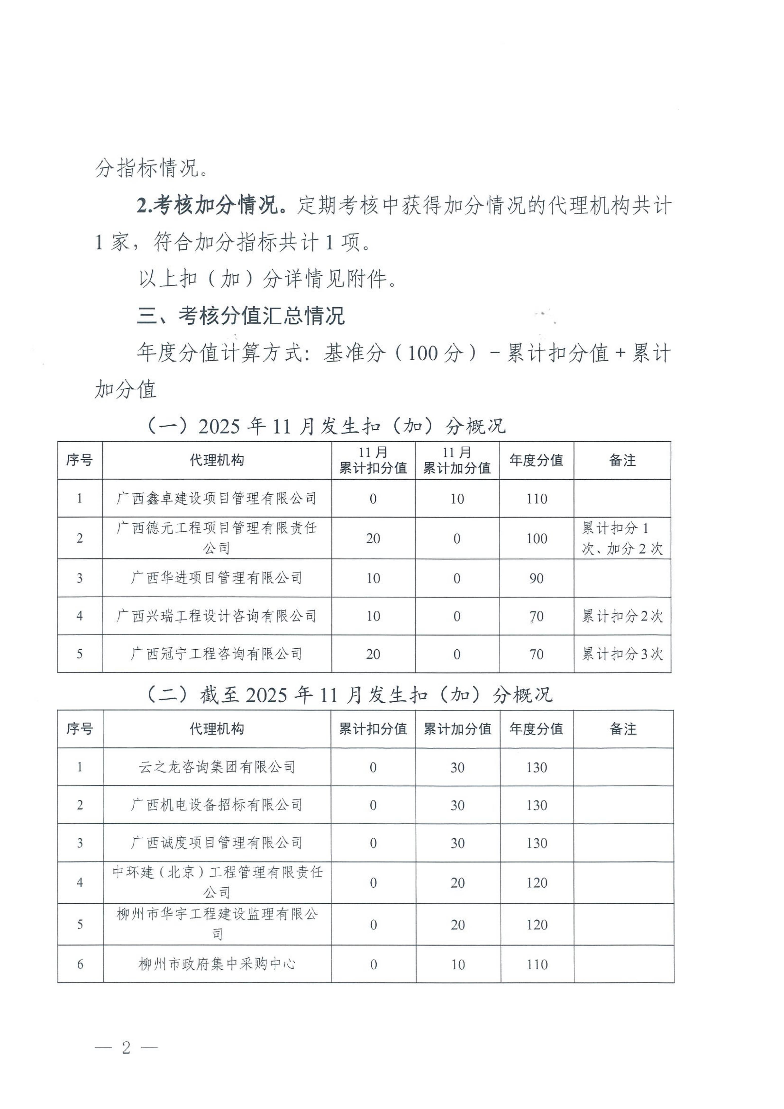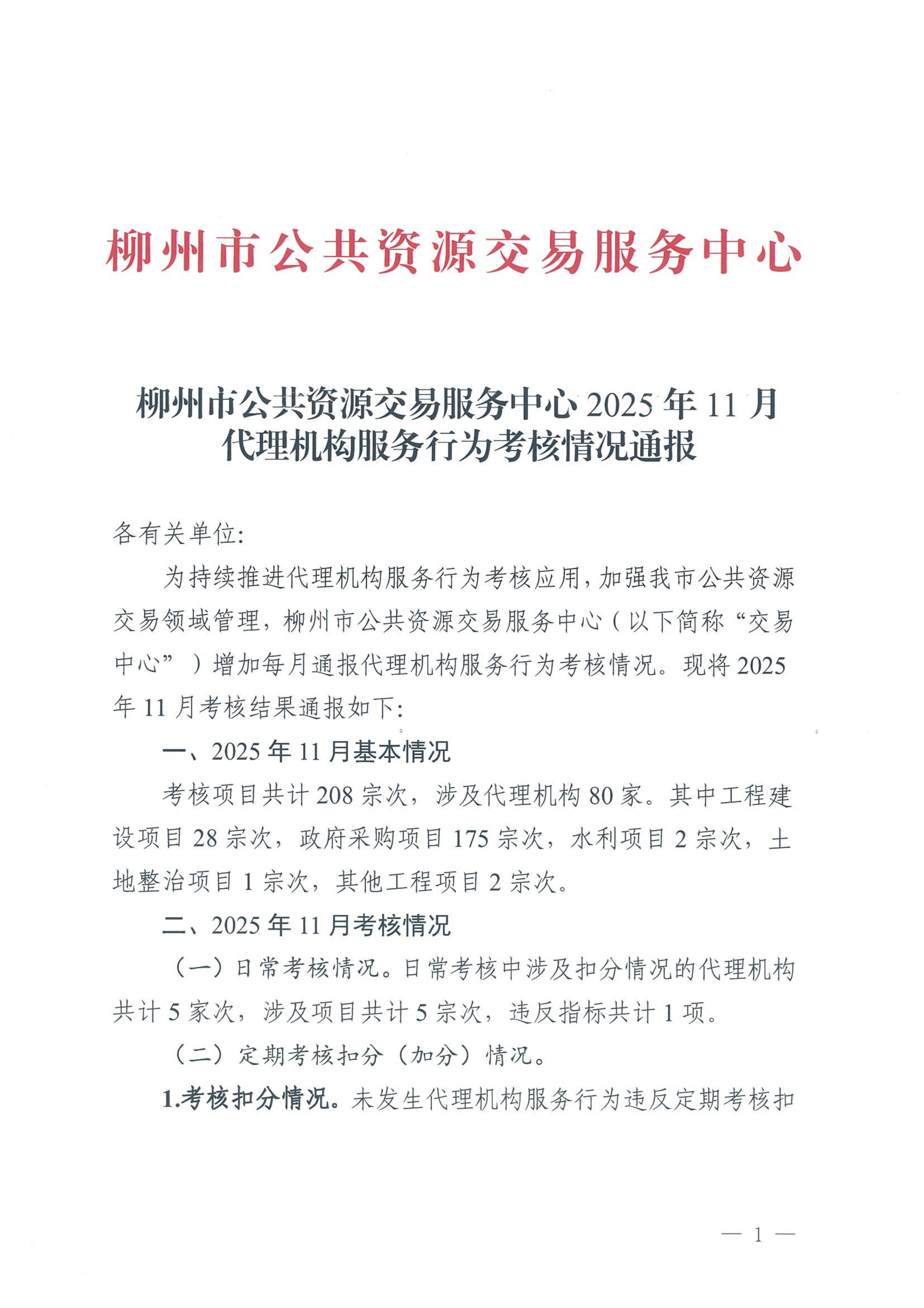 柳州市公共资源交易服务中心2025年11月代理机构服务行为考核情况通报